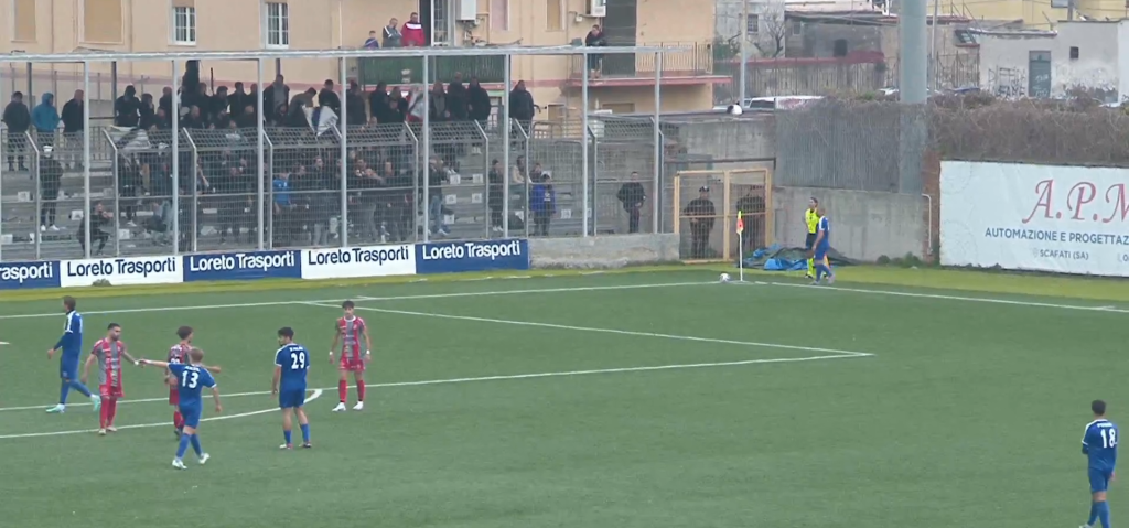 Alla ripresa dei giochi, la prima occasione per l’Angri, al 5° cross di Ascione in area dove Longo è bravo a prendere il tempo a Delvino e impatta di testa, la palla termina alta sulla traversa. Al 54° altra occasione per l’Angri che sfrutta un errore di appoggio di Porro verso Delvino e recupera palla con Sabatino che serve Ascione che al limite si libera al tiro, è provvidenziale l’intervento di Cipoletta che con il corpo si immola a difesa della porta.