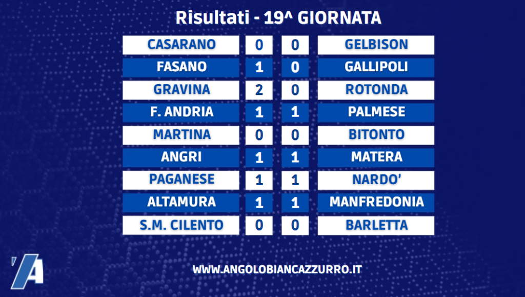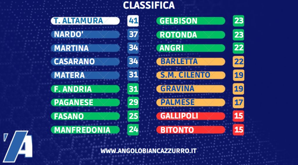 Note: Spettatori un migliaio circa con 100 tifosi biancoazzurri. Ammoniti: Picascia e Sabatino per l’Angri. Angoli 4 a 2 per il Matera. Recupero 1 e 5 minuti
