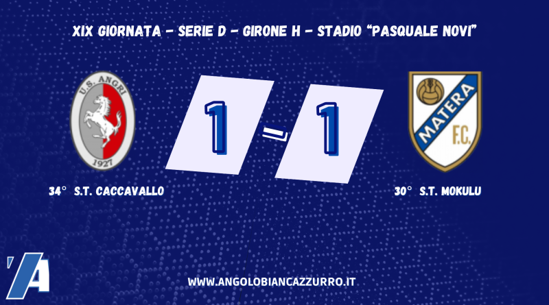 Dopo 5 minuti di recupero il signor Pani di Sassari con il triplice fischio finale sancisce il risultato di parità, un pareggio giusto per quanto visto nell’arco dei novanta minuti, con l’Angri che si è mostrato più propositivo nelle azioni di attacco, con il portiere Tartaro che a parte qualche intervento di ordinaria amministrazione non è stato quasi mai chiamato in causa, per il Matera resta un pò l’amaro in bocca per aver sbloccato il risultato ma è stato raggiunto immediatamente dal goal del’ex Lecce, Parma e Venezia Caccavallo.